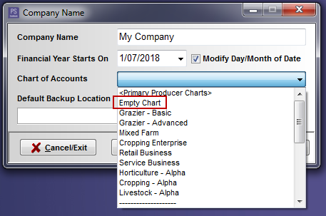 Select the type of Chart of Accounts required from the list displayed by left clicking on your mouse .
