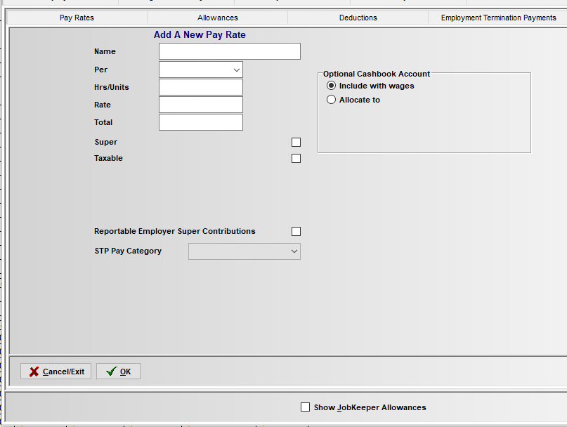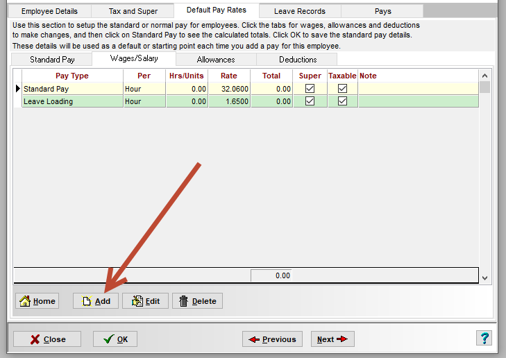 Go to the Pay Rates page and click Add. Fill in the details as required.