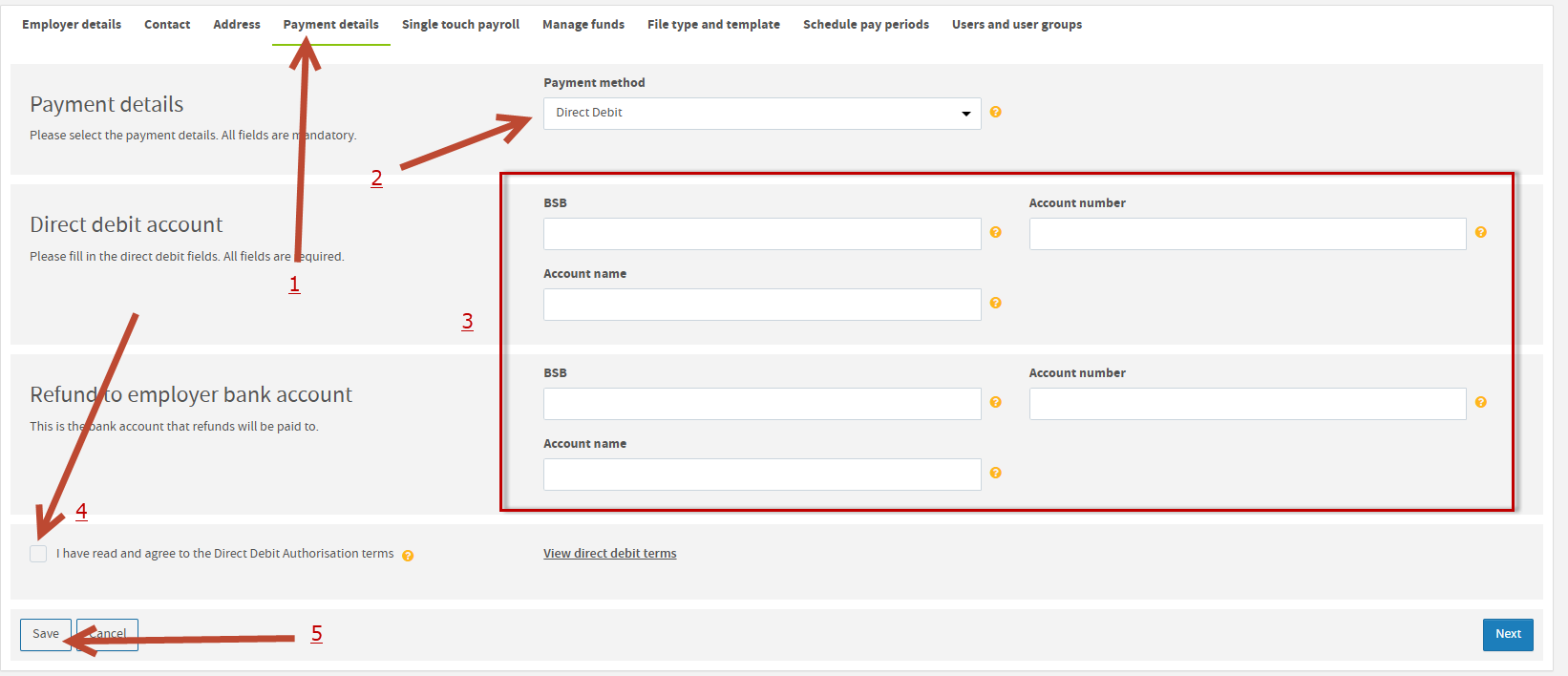 Step 4 - Go to the payment details page. Set it to Direct Debit and complete your bank details. Agree to the Direct Debit Authorisation terms, then click save.